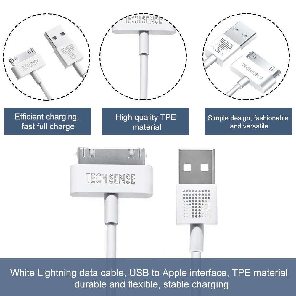 - 2-in-1 Functionality: Effortlessly sync and charge your devices equipped with the 30-pin connector—covering models like the iPhone 3G/3GS, iPhone 4/4S, iPad 1/2/3 and various iPod generations—making it the ideal cable for users.