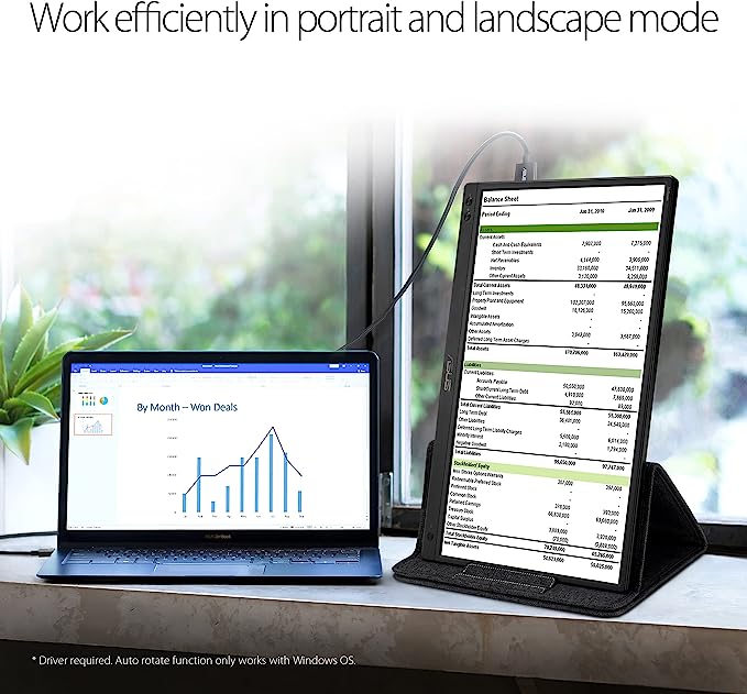 - Smart Cover & Works in Portrait?The foldable stand and smart cover design of the ZenScreen portable monitor allows it to work in both portrait and landscape mode on any surface.