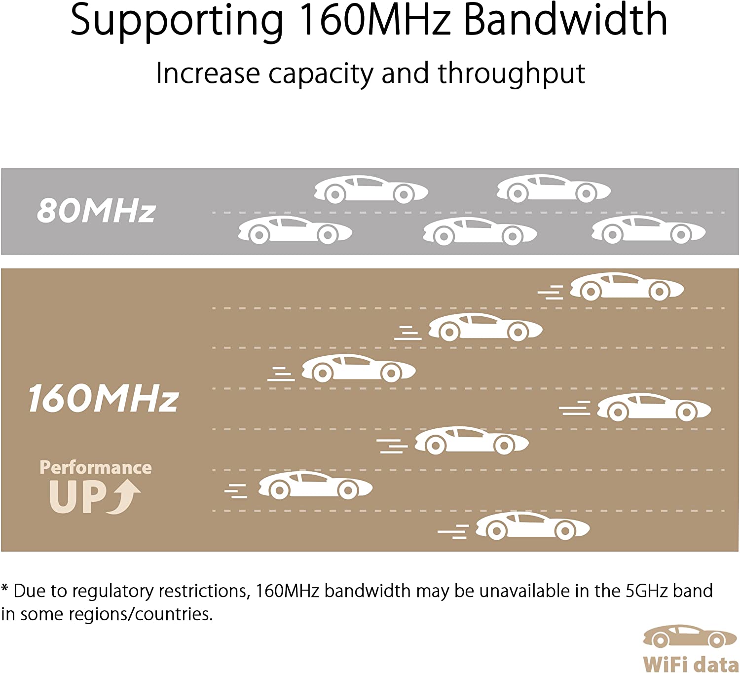 - WiFi 6 (802.11ax), 2402Mbps (5G-1), Wi-Fi 6 (802.11ax), 4804Mbps (5GHz-2), Wi-Fi 6 (802.11ax), 574bps (2.4GHz)