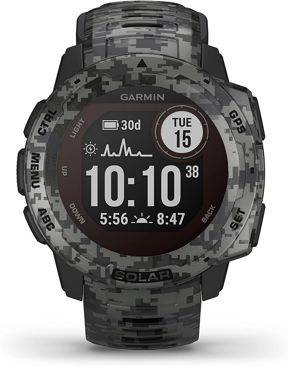 | Model name | Garmin Instinct Solar Camo Edition GPS Watch – Graphite Camo |