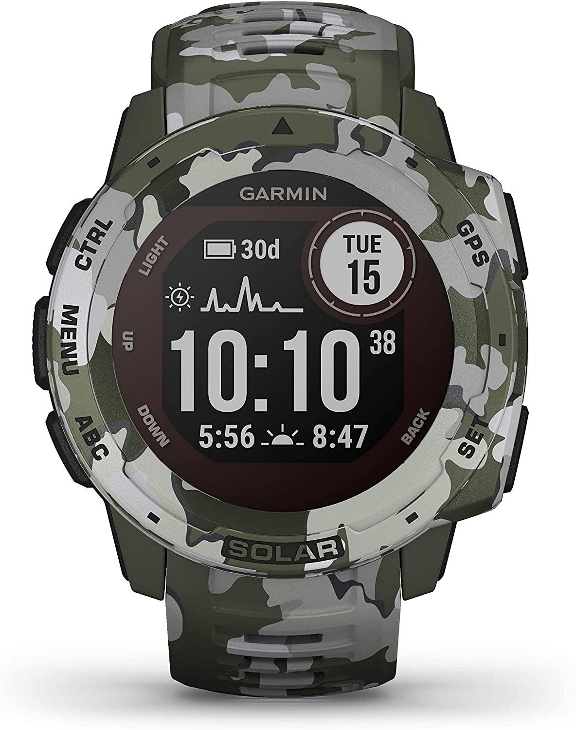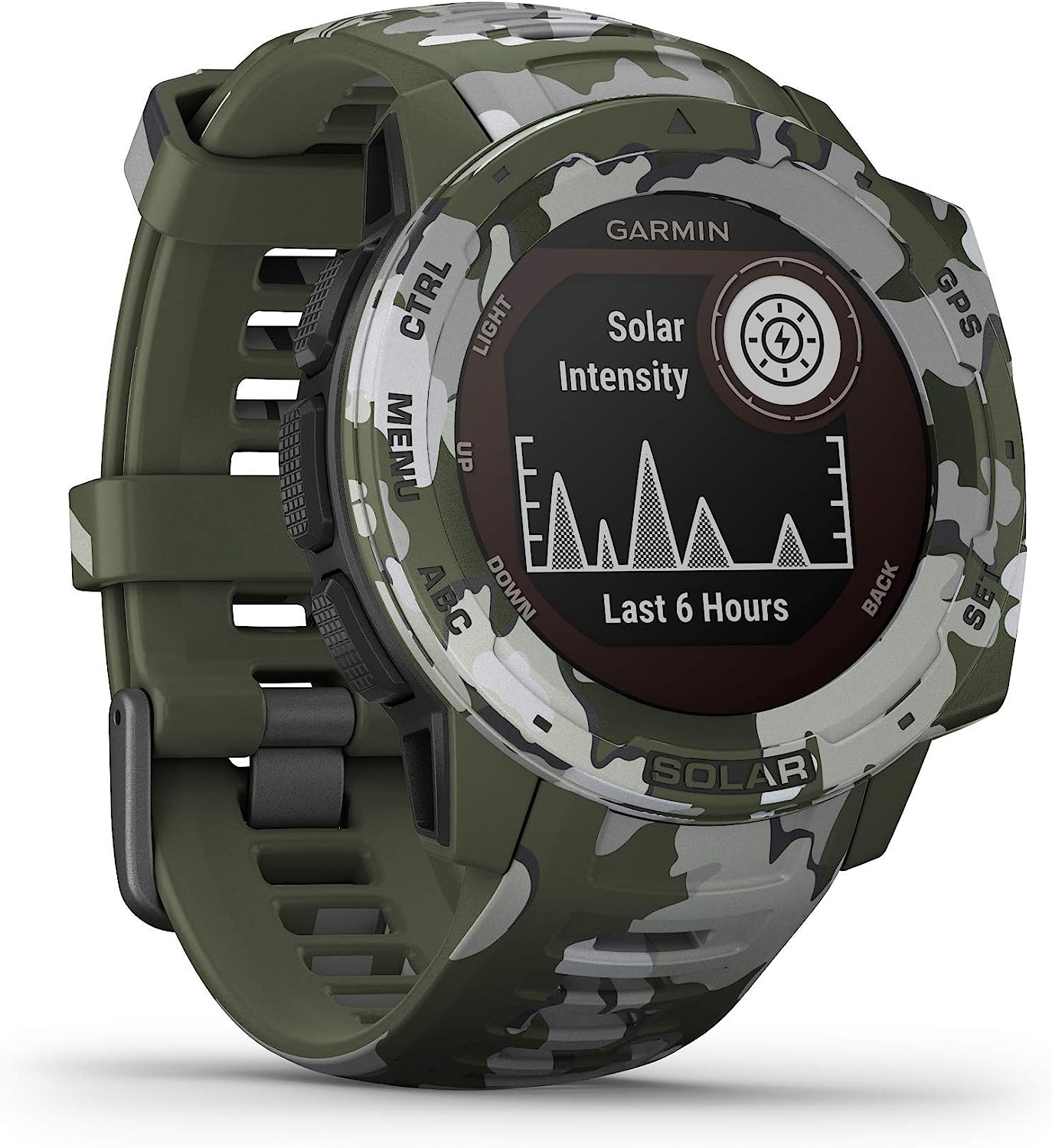 Garmin Instinct Solar, Solar-powered Rugged Outdoor Smartwatch, Built-in Sports Apps and Health Monitoring, Lichen Camo