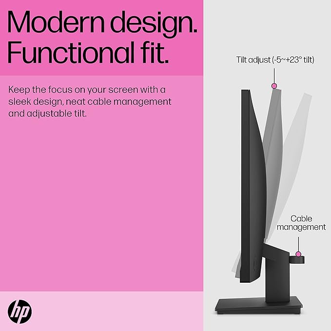 - Modern Design. Functional Fit – Keep the focus on your screen through the sleek 3- sided micro-edge bezel, that maximizes your viewing area for a sleek design and virtually seamless dual-monitor setups. The tilt-adjustable stand helps deliver the perfect view so you can maximize productivity and work comfortably