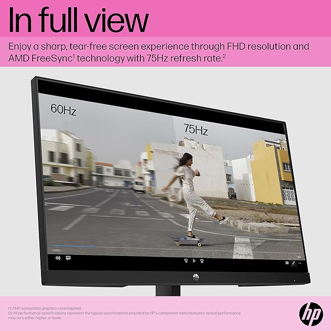 - Experience smooth, life-like video – AMD FreeSync technology* featuring a 75Hz refresh rate, provides smooth, tear-free videos by reducing input latency, screen tearing, and stuttering