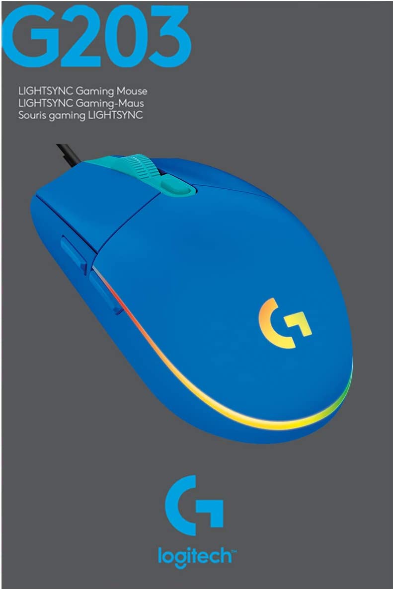 Logitech G203 LIGHTSYNC Gaming Mouse – Customizable RGB, 8K DPI, Lightweight, Blue