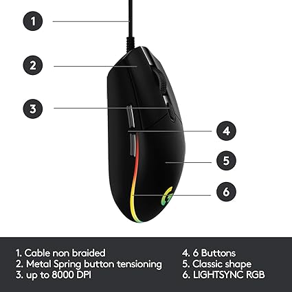 Logitech G203 LIGHTSYNC Gaming Mouse with Customizable RGB Lighting – Black