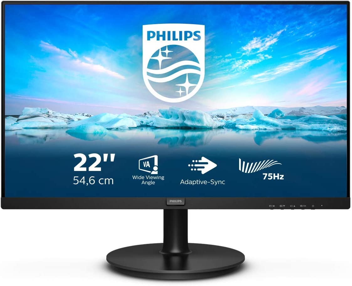 Philips 222V8LA – 22 inch FHD Monitor, 75Hz, 4ms, VA, Speakers, Flickerfree (1920 x 1080, 250 cd/m, HDMI / DP / VGA )