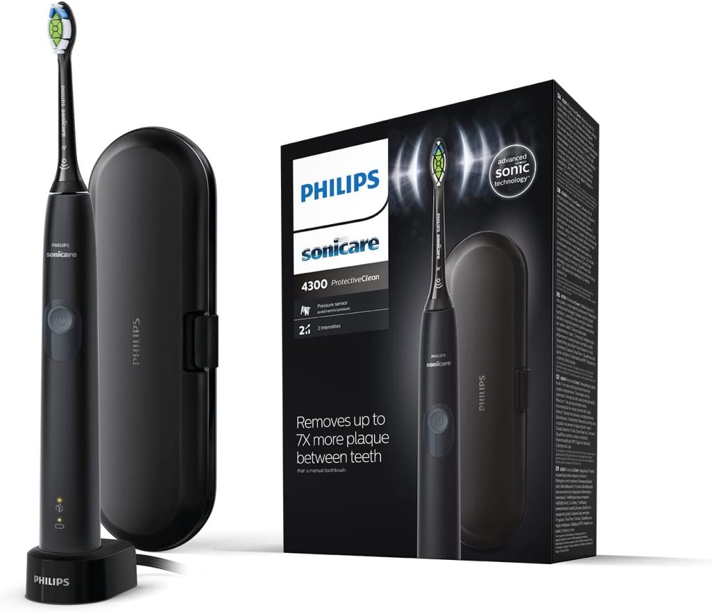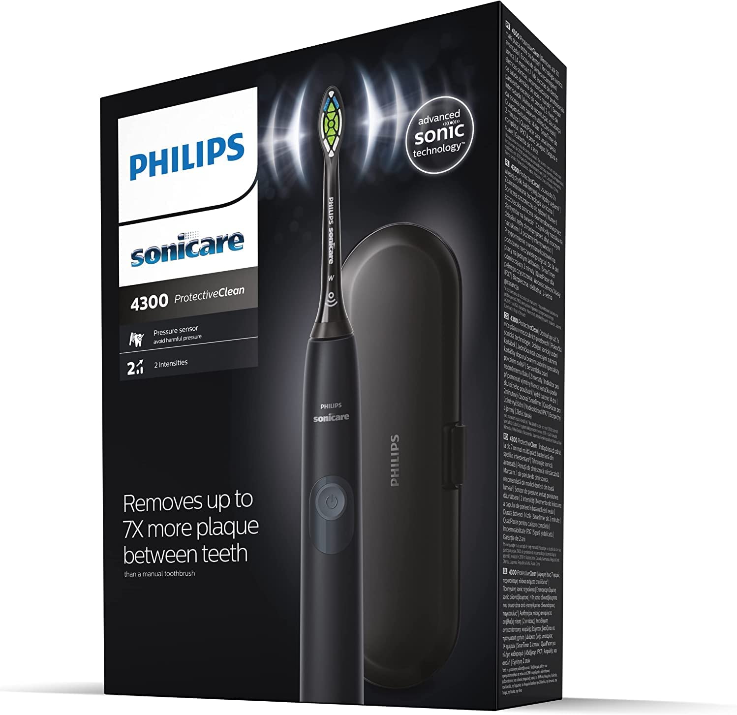 Philips Sonicare ProtectiveClean 4300 Sonic Electric Toothbrush – Black Gray (2 Pin Plug)