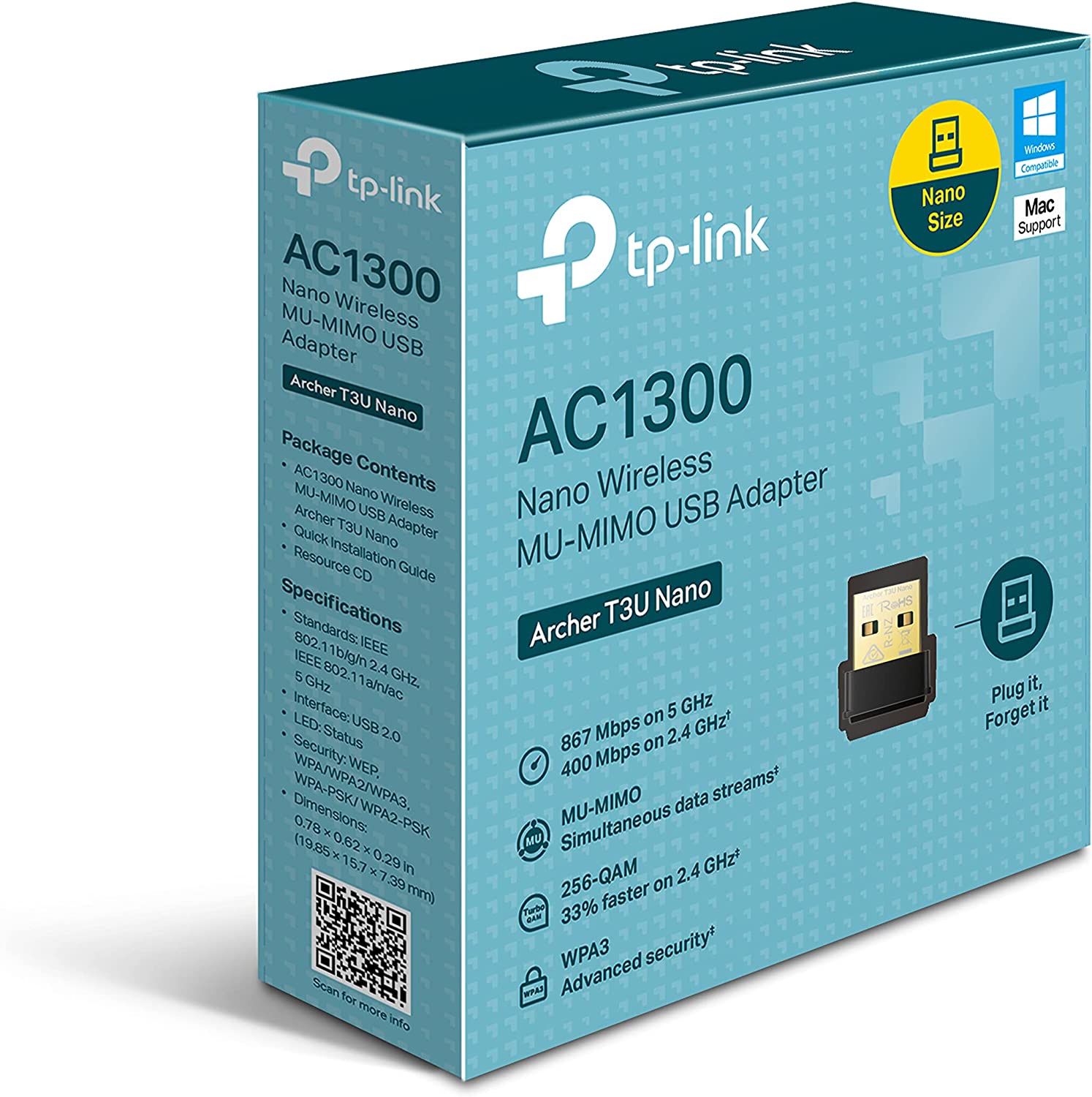 TP-Link AC1300 Nano Wireless USB Adapter – Dual-Band, Miniature Design, WPA3 Security, Easy Setup (Archer T3U Nano)