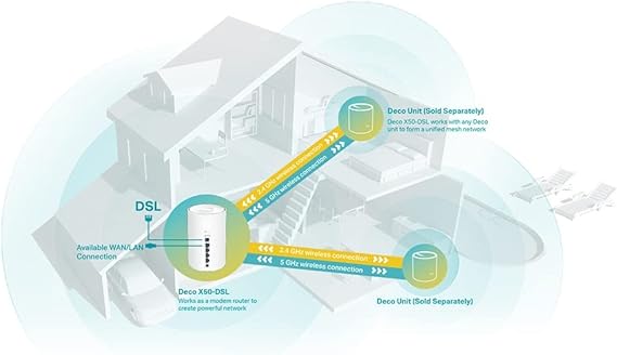 Armed with a built-in VDSL/ADSL modem, Wi-Fi 6, and TP-Link Mesh technology, Deco X50-DSL saves you a fortune on the DSL modem equipment and delivering an excellent whole-home Wi-Fi experience.