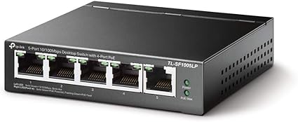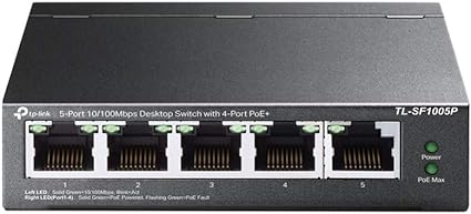 TP-Link PoE Switch 5-Port 100 Mbps, 4 PoE ports up to 15.4 W for each PoE port and 41 W for all PoE ports