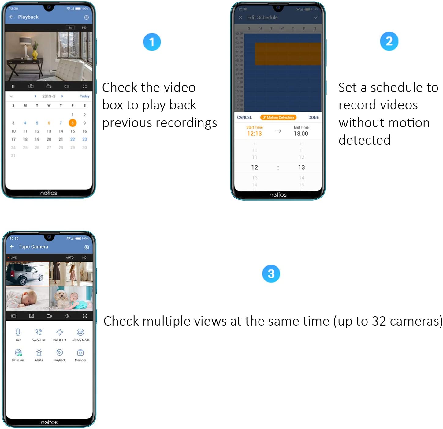 Two-way Audio – With built-in microphone and speaker, you can keep in touch with your family anytime, anywhere;