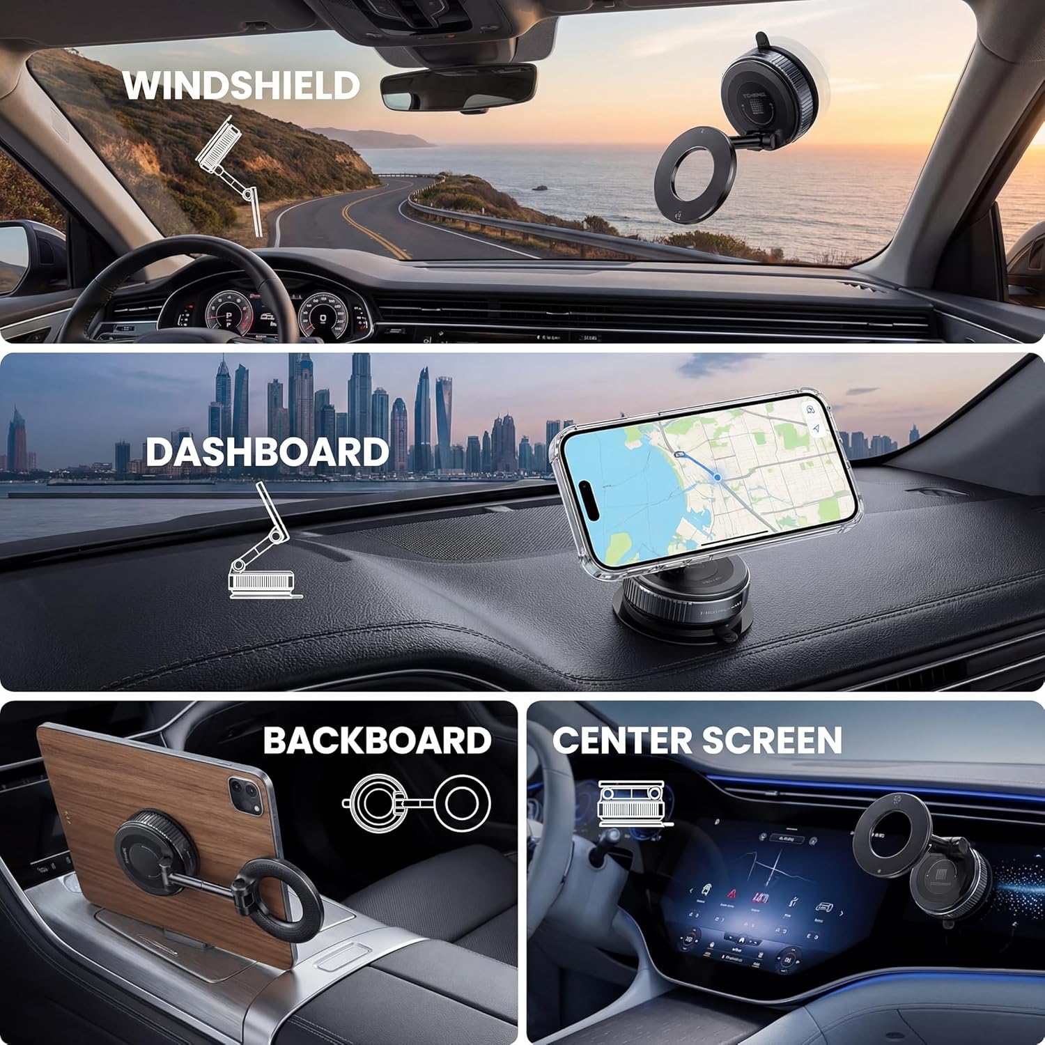- Portable & Versatile: The vacuum suction leaves no marks on cars, screens, or other surfaces. Lightweight and easy to carry, it’s perfect for driving, workouts, cooking, watching videos, doing makeup, and more.